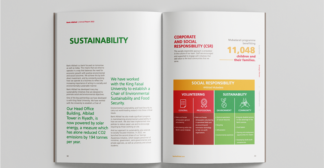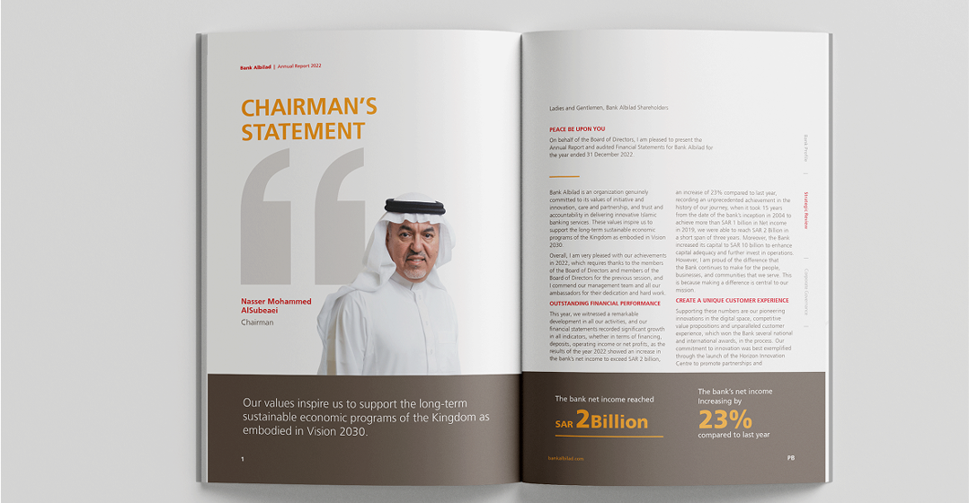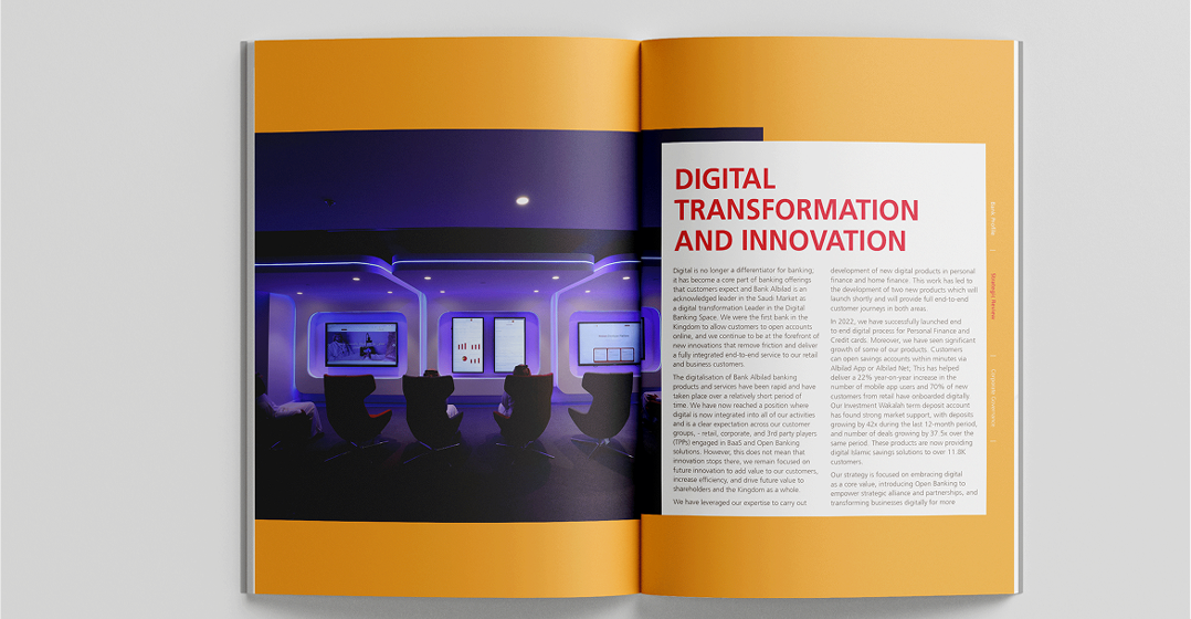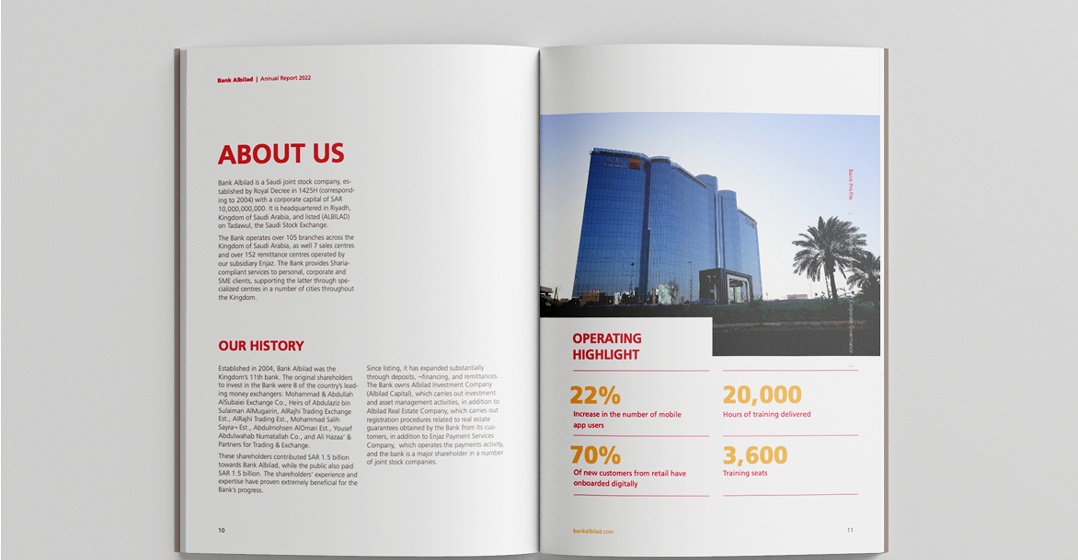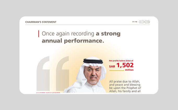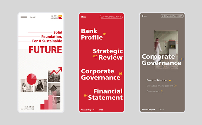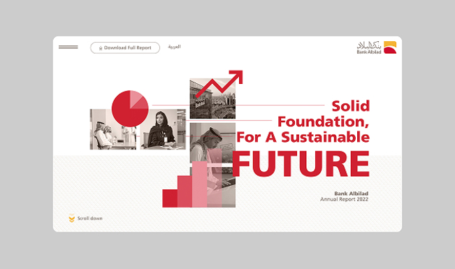 ومن خلال مواءمة التصميم مع استراتيجية العلامة التجارية لبنك البلاد، أبرزنا إنجازاتهم ورؤيتهم للنجاح المستدام في القطاع المالي.