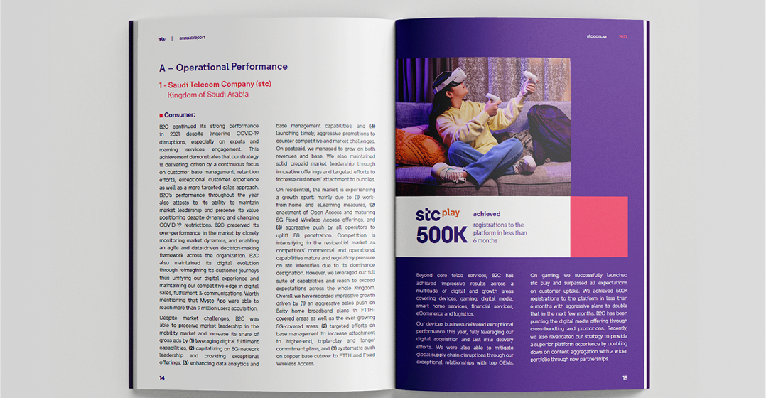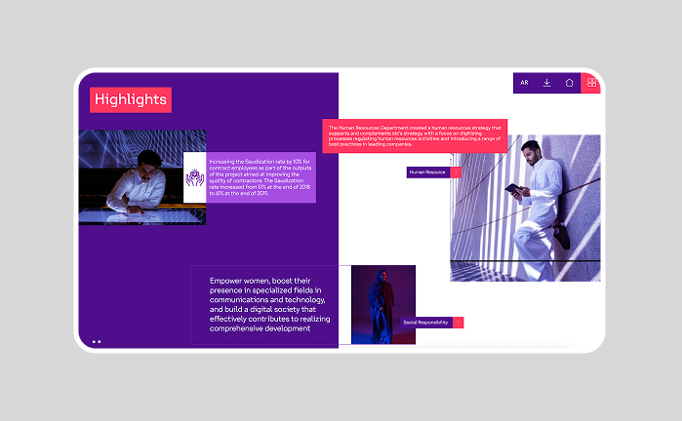 من خلال تجربة رقمية غامرة ومبتكرة. تمثل هدفنا في تطوير تقرير سنوي متقدّم وحديث يعكس سعي STC بكسرها للحواجز ووضعها لمعايير جديدة في القطاع.