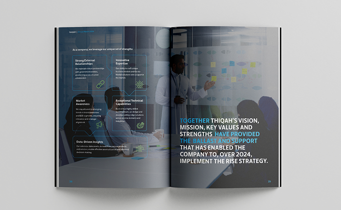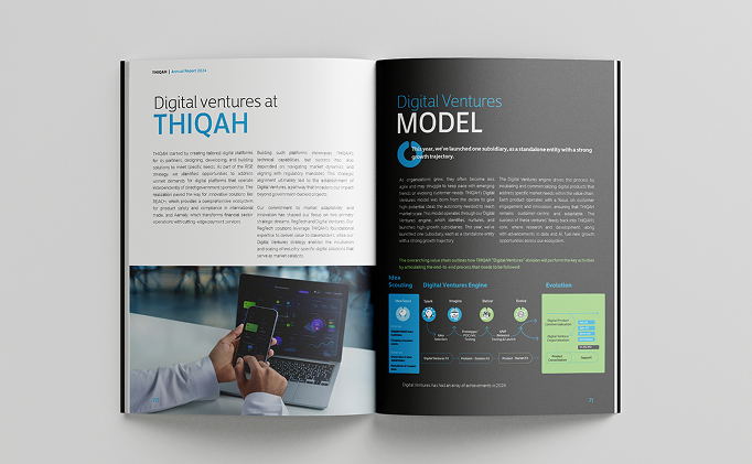 من خلال تصاميم ديناميكية، وعرض بصري واضح للبيانات، وطابع مستقبلي في كل تفصيلة. من الألوان إلى الرسوم البيانية، كل عنصر صُمّم ليعكس رحلة الابتكار لدى ثقة والتزامها بالتحول على نطاق واسع.