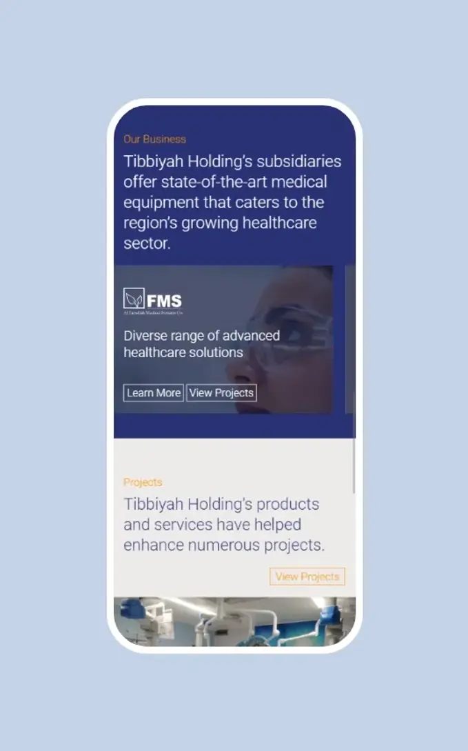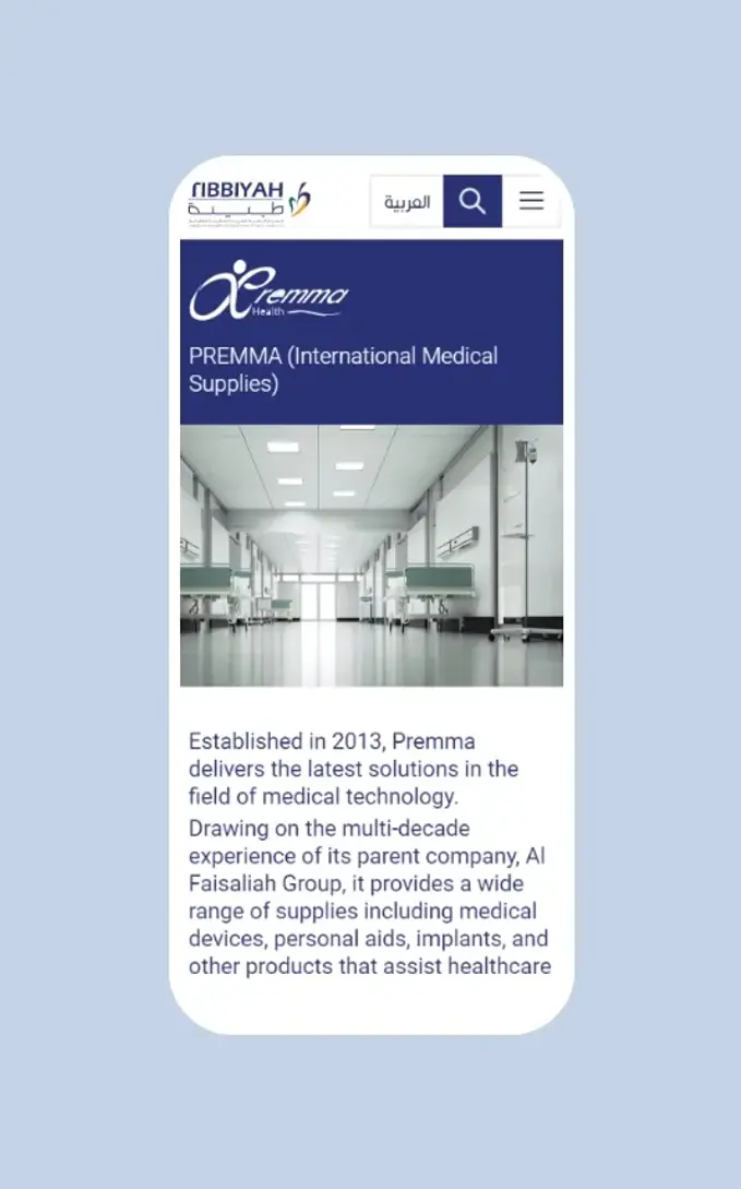 وتعمل من خلال ثلاث شركات تابعة: الفيصلية للأنظمة الطبية، بريما (شركة لوازم الدولية الطبية)، وفيليبس للرعاية الصحية، السعودية. وقد تمثّل هدفهم في تصميم موقع إلكتروني يُبرز هويتهم المؤسسية، وخدماتهم، ومنتجاتهم، مع تقديم وصف تفصيلي يُسهّل التواصل مع المستخدم.
