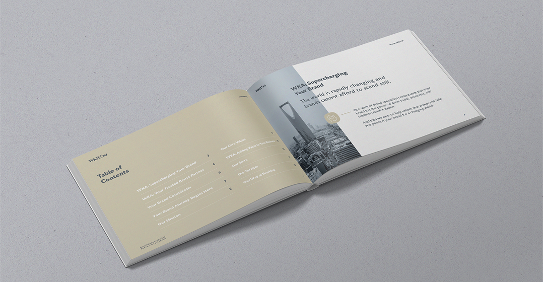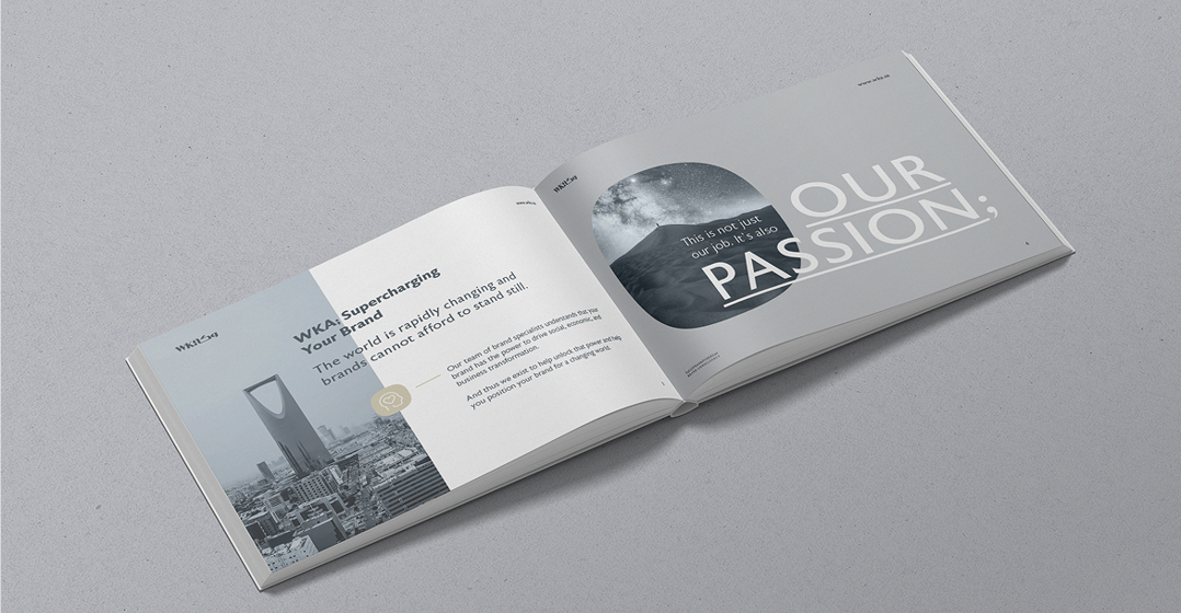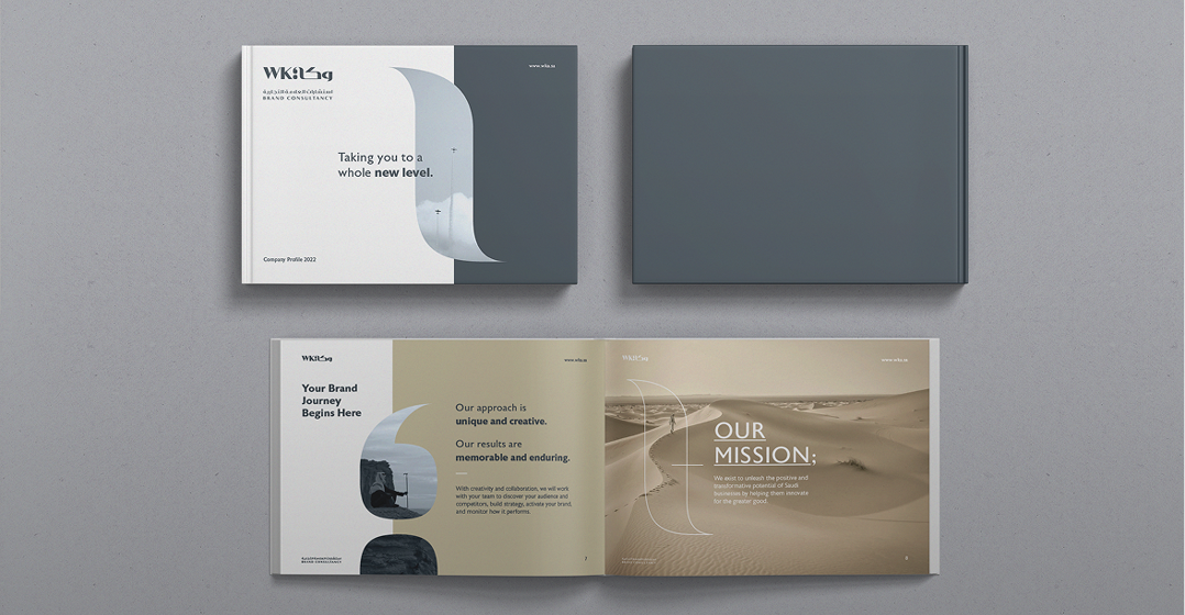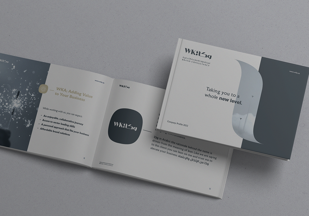 إلى سبارك لتصميم ملف تعريفي يُجسّد خبرتها الإبداعية ويُعبر عن هويتها وخدماتها بشكل جذّاب ومقنع. تمثل هدفنا في تصميم ملف تعريفي بصريًا لافتًا وهيكليًا مدروسًا، يعكس فلسفة العلامة التجارية لـ WKA وينقل اقتراح القيمة الخاص بها بشكل فعال.